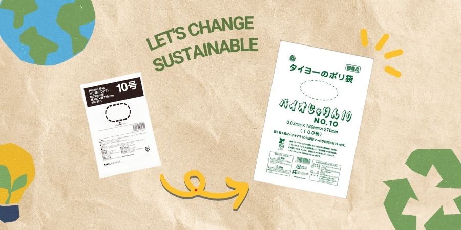因此,作為這一轉變的第一步,我們將經常使用的10 號(尺寸)和14 號(中尺寸)塑膠袋更換為經過認證的生物質袋!