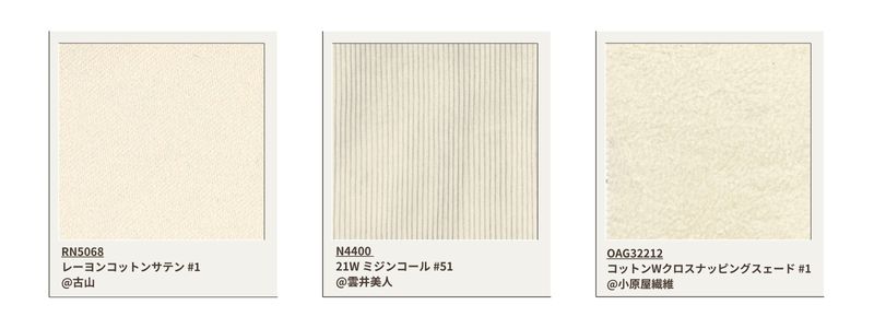 根據材質的不同,給人的印像也會發生顯著變化,從光滑的緞紋材質到張力布料的柞絲紡材質。