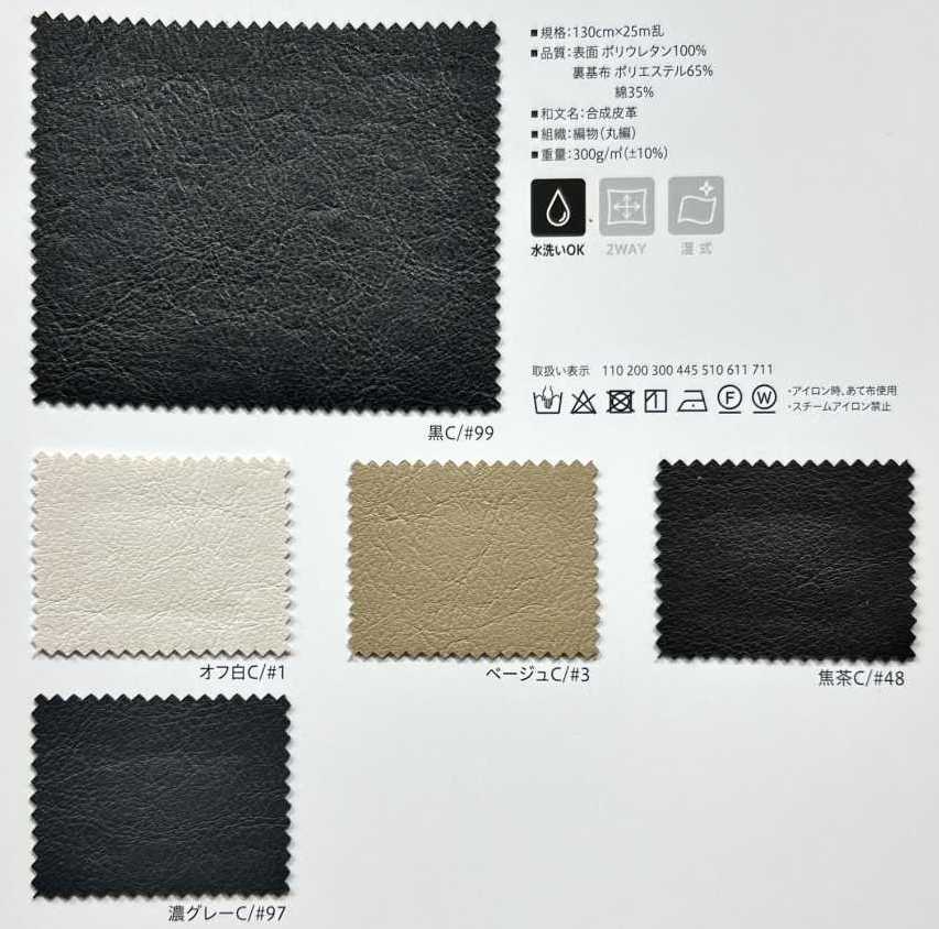 這種乾爽的合成皮革具有小牛皮的外觀,由於背面採用聚酯纖維/棉混紡面料並經過生物處理,因此觸感獨特,帶有褶皺和紋理。