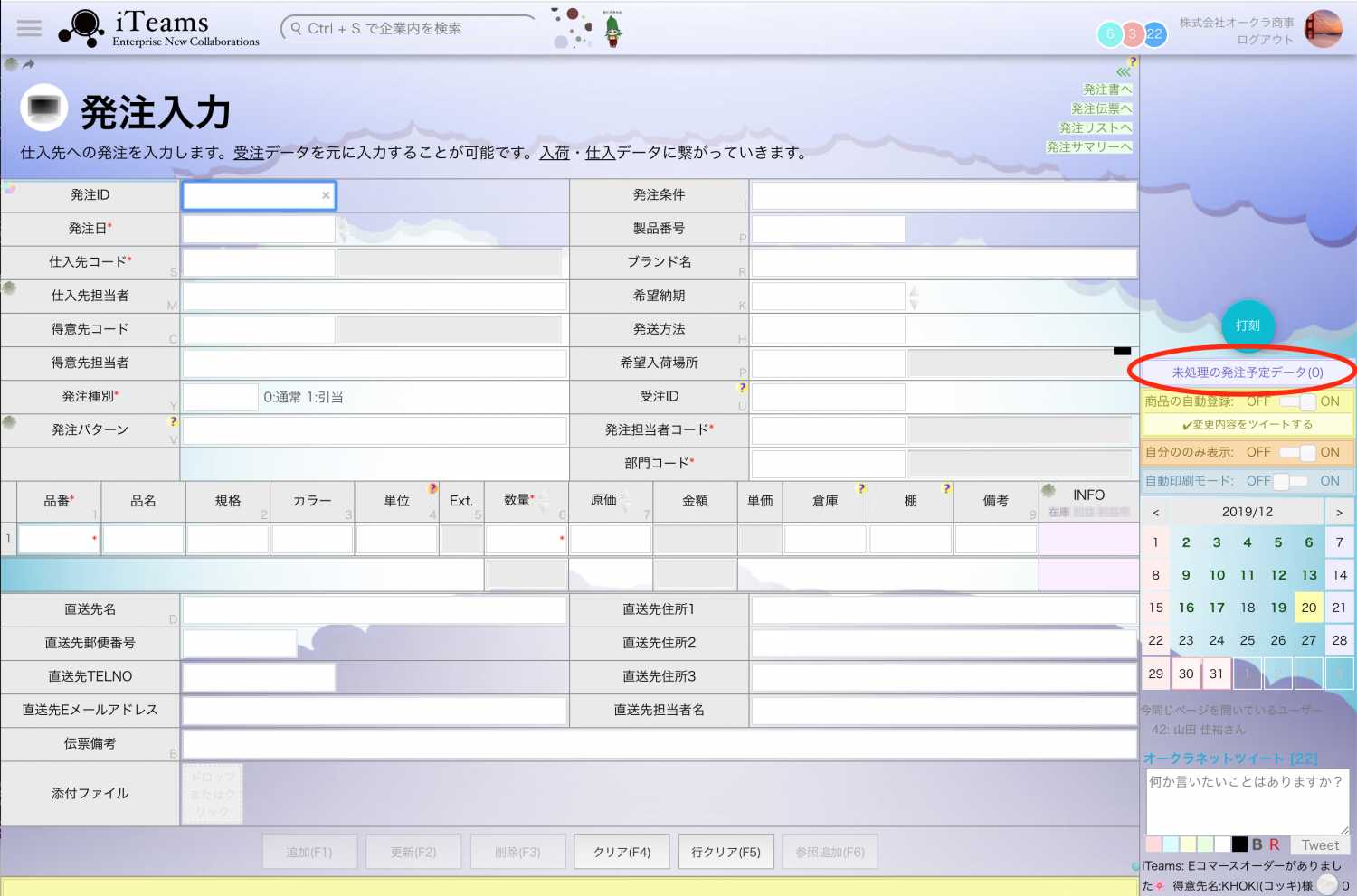 右邊的未處理訂單計畫資料列出了已輸入訂單的商品,點擊後會調出各供應商的訂單資料。
