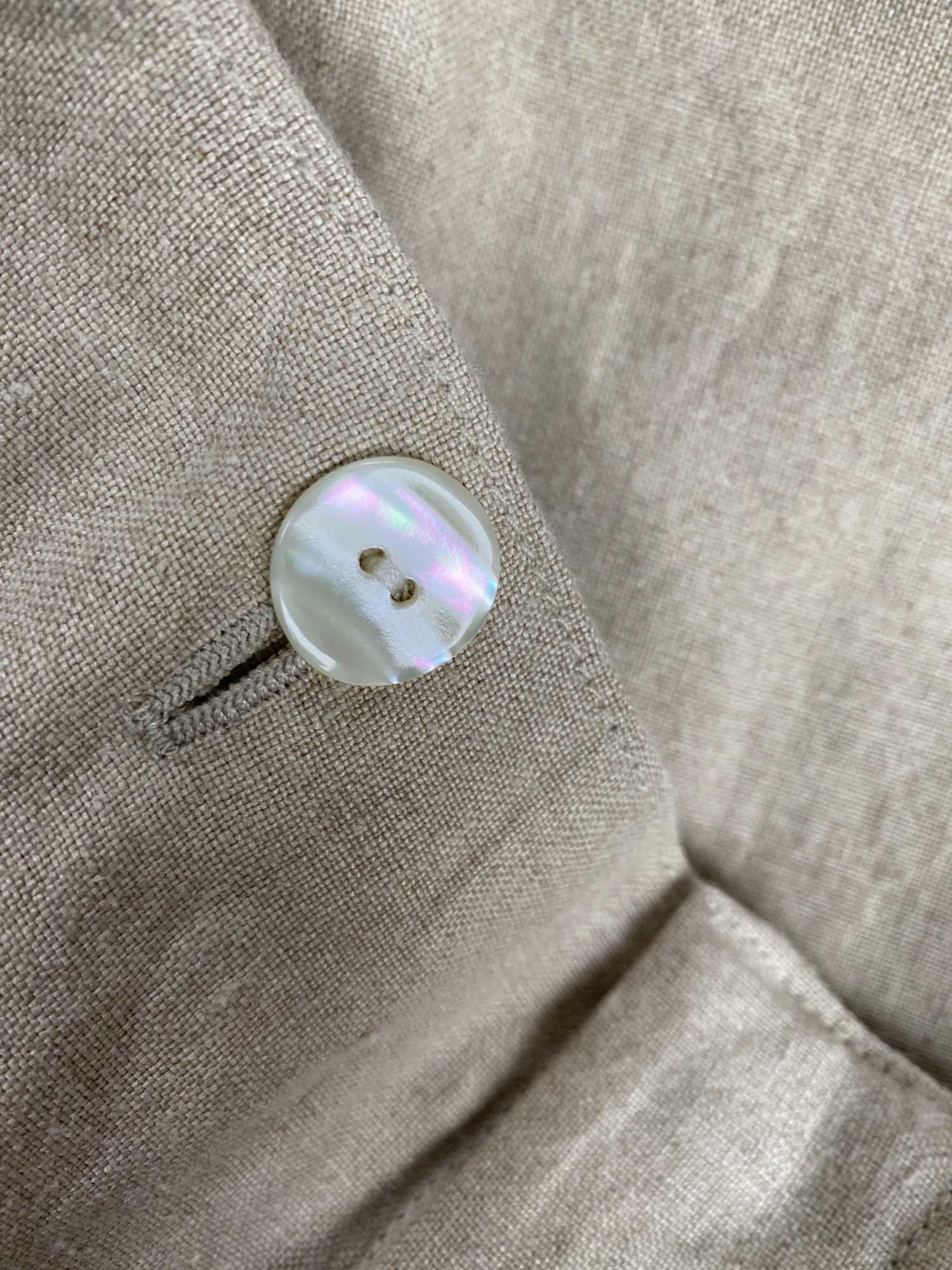 這些紐帶貝殼紐扣有兩個孔,而且不是平的,而是略微扭曲的形狀。