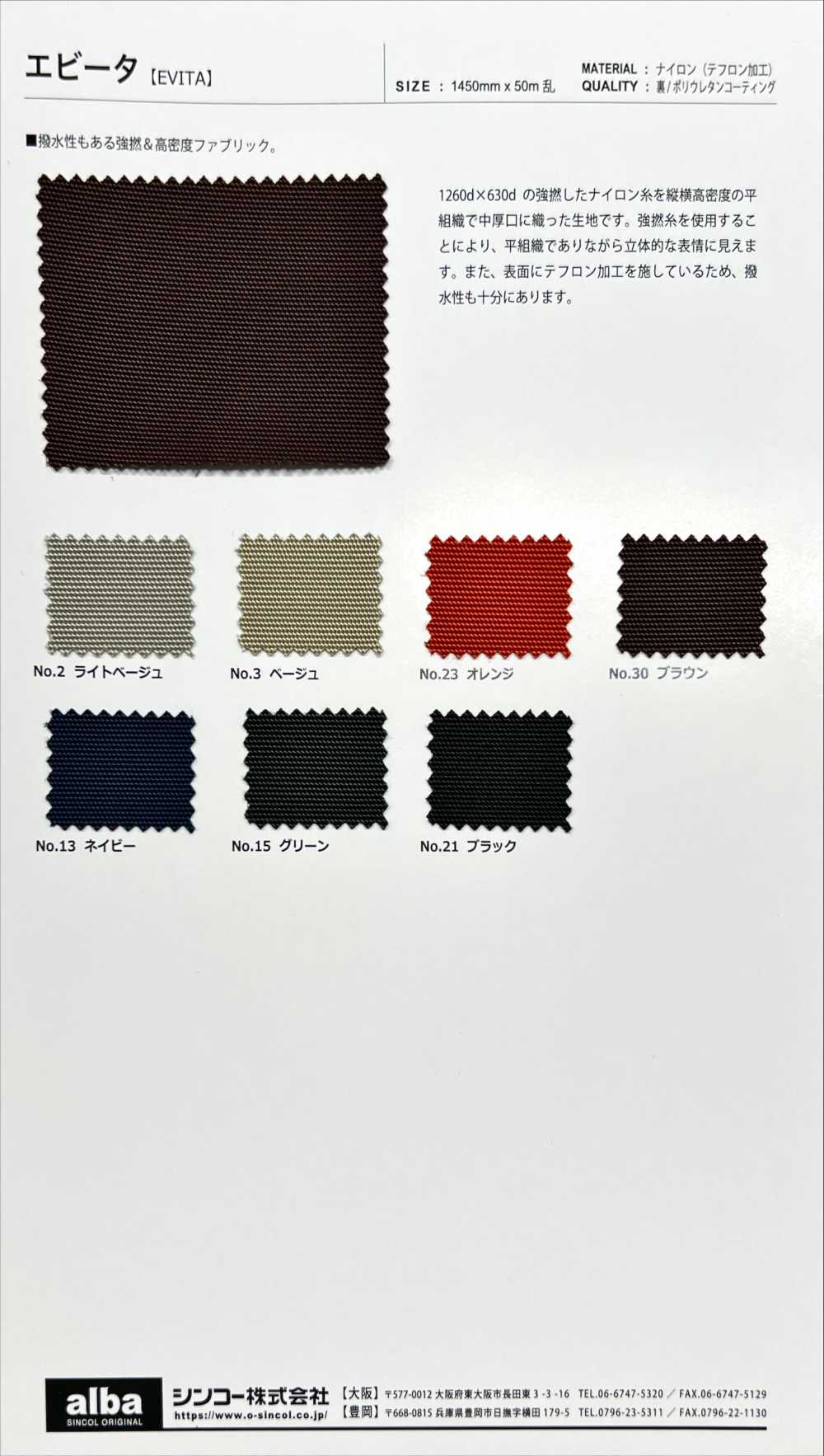 這款布料採用1260dx630d高捻尼龍,經緯向均採用高密度平紋布料,重量適中。高撚紗線的使用使其即使採用平紋編織,也呈現出立體感。布料表面也經過特氟龍處理,具有極強的防水性能。